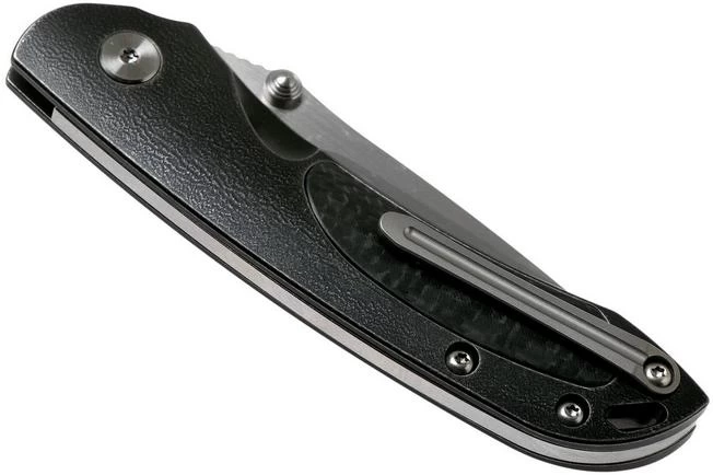 The Bestech Junzi BT1809 is a beautiful gentleman’s knife. You open the knife with one hand and when opened the blade is blocked by a slipjoint. As such you can legally carry the Junzi in many places in Europe. The titanium frame is enhanced with a nice carbon fibre inlay. The seamless fit of the inlays emphasizes how much attention was paid to this knife.
