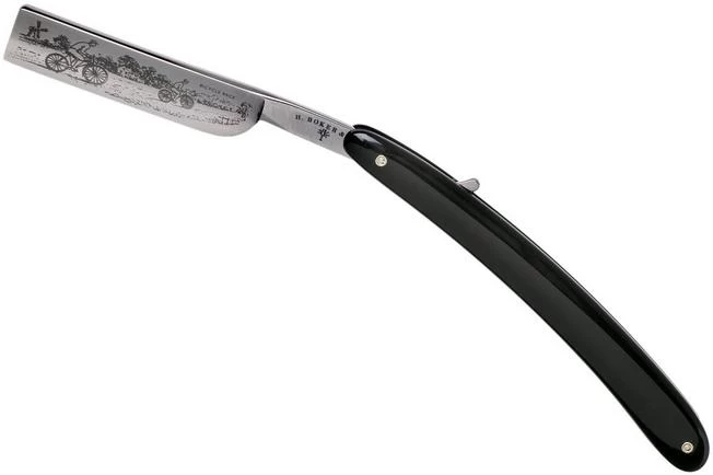 The Böker Manufaktur Bicycle Race, Black Synthetic 140223 is a top-quality straight razor. The blade height is only 5/8″”. Böker has been producing straight razors for over a hundred years and has an excellent reputation in this field. This straight razor is made in the Böker workshop in Solingen, Germany.