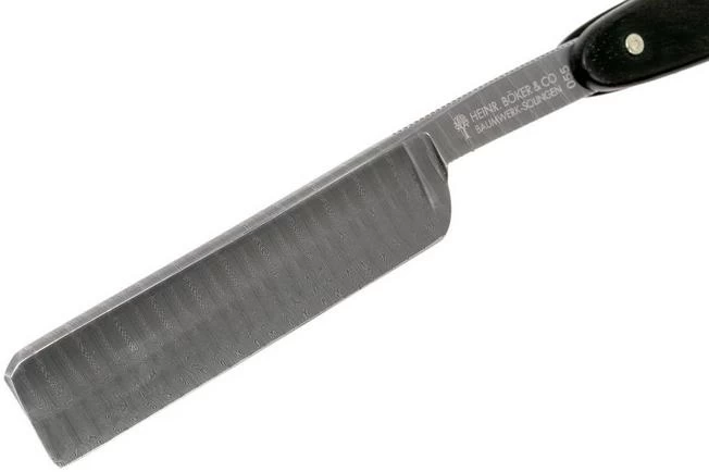 The Böker Manufaktur Ebony Damascus Limited Edition 140409DAM is a top-quality straight razor. Böker has been producing straight razors for over a hundred years and has an excellent reputation in this field. This straight razor is made in the Böker workshop in Solingen, Germany.