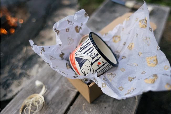This Knivesandtools Enamel Set E-SET-02, Mugs 8 cm & 10 cm is a set of two cool enamel mugs for the real outdoor enthusiast. The 8 cm mug is enhanced with a print of a cosy camping scene The 10 cm mug is enhanced with a print of a hiker in an atmospheric snowy landscape. These designs are designed by no other than our own outdoor expert Padraig Croke.