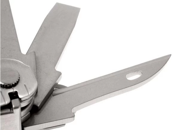Stainless steel multi-tool with pliers, 2 blades and a wide range of tools for everyday use. The wire cutters in the pliers are removable, allowing you to replace them or resharpen them safely and easily. It features a unique locking mechanism that guarantees safety at all times.