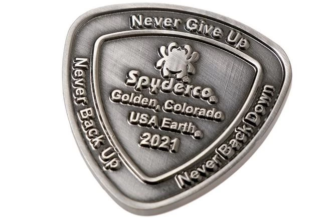The Spyderco Spydercoin 2021 edition COIN2021 is a cool silver-coloured coin for the real Spyderco collector. It is a nice addition to your showcase next to your favourite Spyderco knife. Or for your EDC photographs on Instagram.