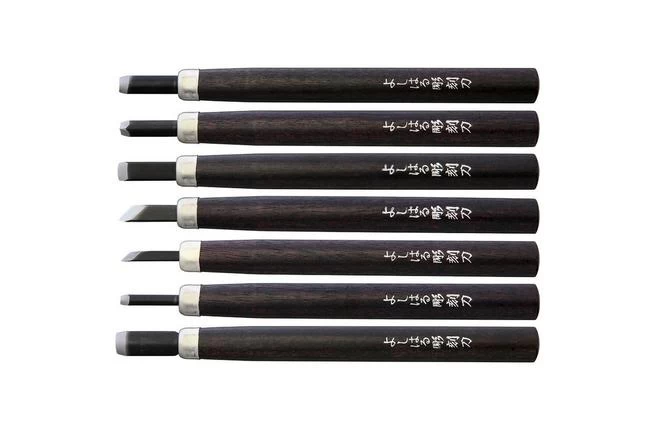 Yoshiharu H-7 Japanese Wood Carving Knives, Set Of 7