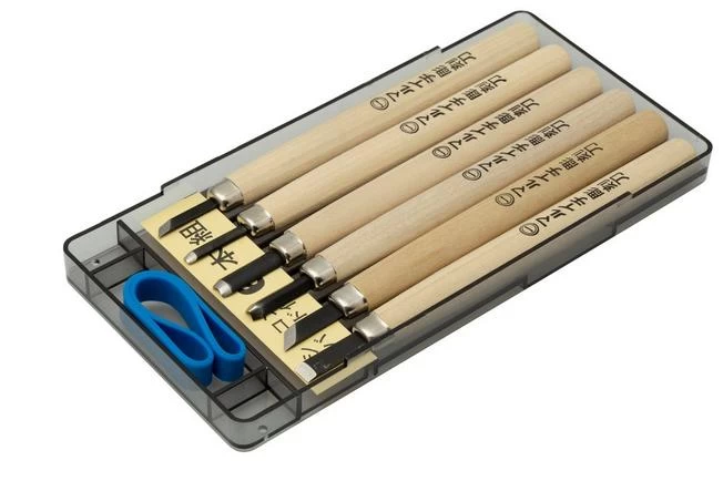 Yoshiharu KL-6 Maruichi Japanese Wood Carving Knives, Set Of 6 In Plastic Case